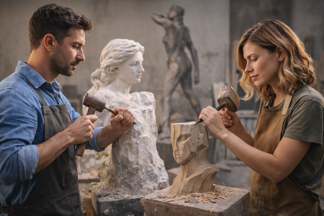 Hacer esculturas en piedra, madera o metal