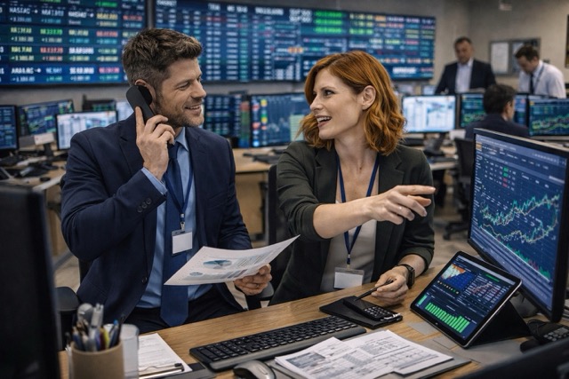 Trabajar en un banco o en la bolsa informando, asesorando y realizando las operaciones financieras