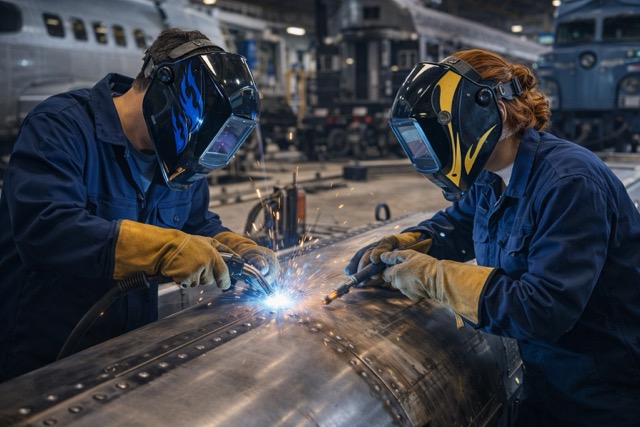 Utilizar diferentes tipos de soldadura para construir aviones, coches y trenes...